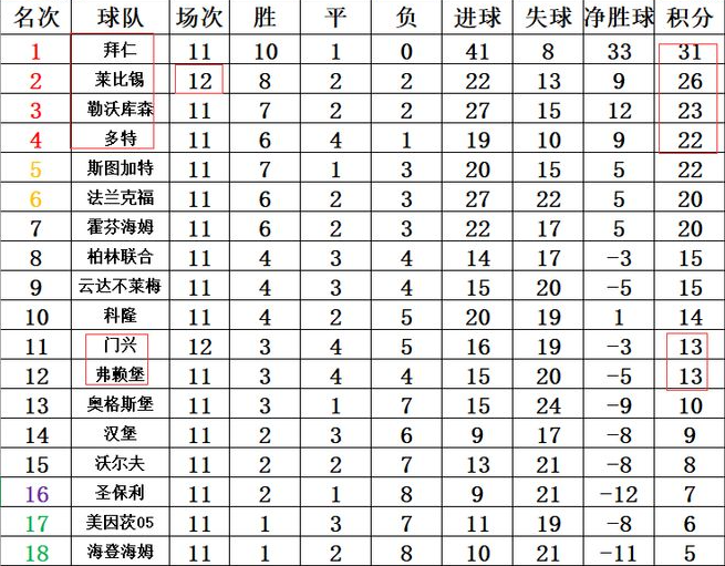 德甲最新积分榜 莱比锡闷平门兴难追拜仁 多赛落后5分