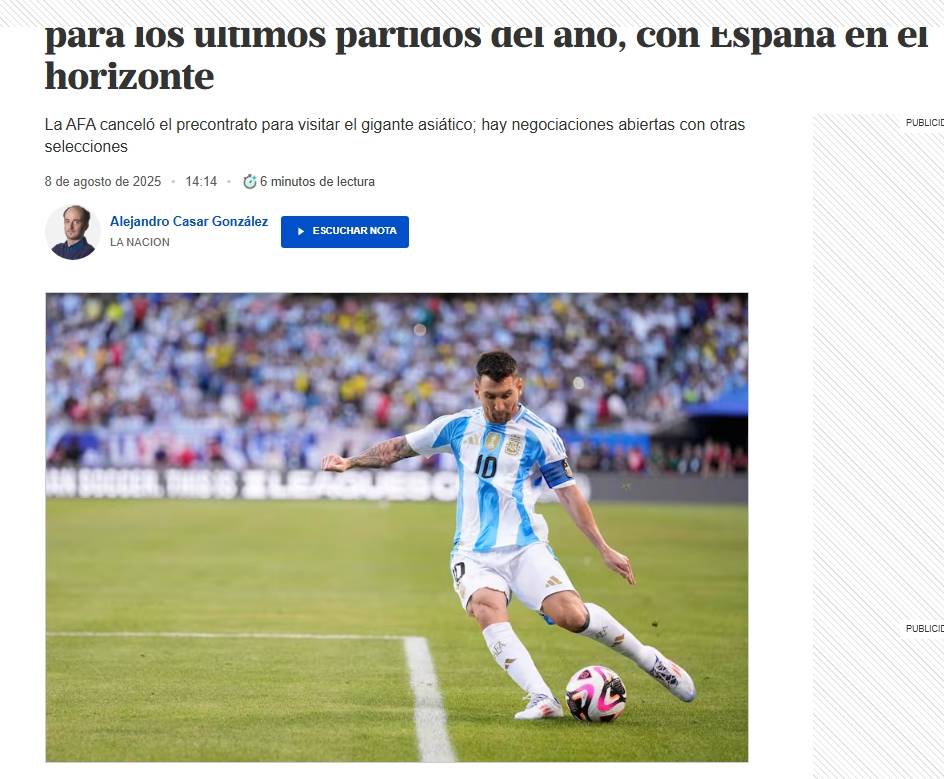 - 多家阿媒曝阿根廷队取消10月中国之行 转而去美国比赛 (2025/08/08 10:09)