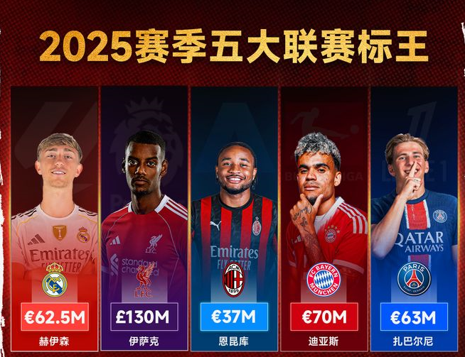 9月2日讯 24/25赛季五大联赛夏季转会窗口已经关闭,五大联赛标王均已产生,其中伊萨克以1.3亿英镑不仅加冕本赛季夏窗标王,并且也是英超历史标王。