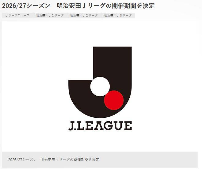 北京时间10月28日消息,今天日本J联赛官方宣布,从2026-27赛季开始将改为跨年制。下赛季的J联赛将于2026年8月8日开幕。最后一轮(第 38 轮)比赛则将于2027年6月5日进行