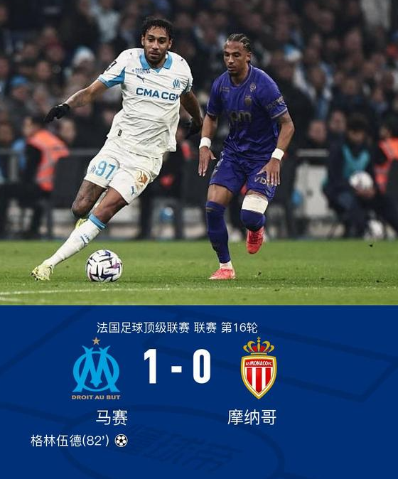 马赛1-0摩纳哥,格林伍德绝杀,巴洛贡、卡马拉进球被吹