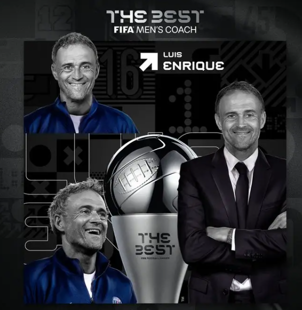 北京时间12月17日消息,FIFA官方宣布,巴黎圣日耳曼主教练恩里克荣膺年度最佳主教练。上赛季,恩里克率领巴黎圣日耳曼队史首夺欧冠冠军,并拿到了法甲、法国杯和法超杯的冠军。2025年改革后的首届世俱杯,恩里克带领巴黎圣日耳曼闯入决赛。