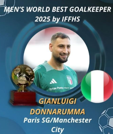 如今IFFHS官方确认,多纳鲁马被他们评为2025年世界男足最佳门将。