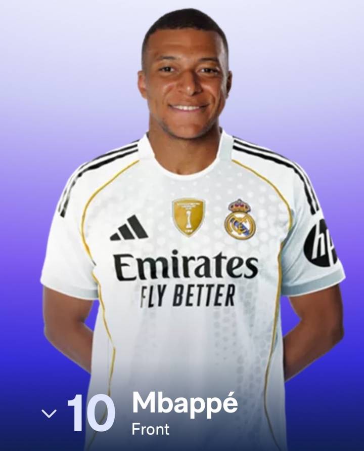 北京时间7月30日消息,皇马官方更新球员号码,法国前锋姆巴佩改穿10号球衣。