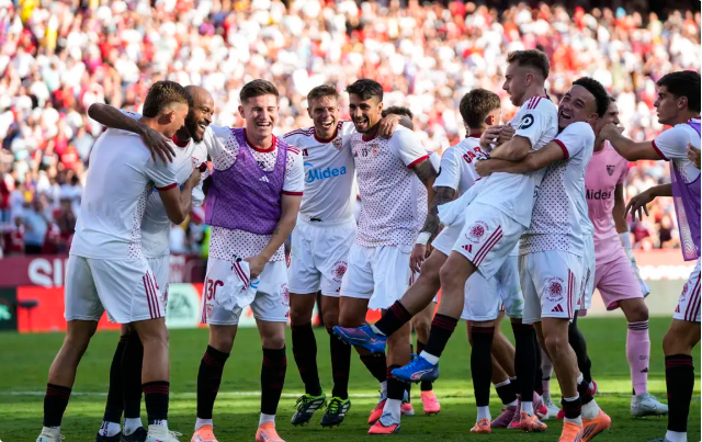 塞维利亚(4231):1-弗拉乔季莫斯/12-苏亚佐、23-马尔考、3-阿兹皮利奎塔、2-卡尔莫纳/20-索乌(第61分钟,6-古德利)、18-阿古梅、19-巴蒂斯塔-门迪(第73分钟,14-赫拉德-费尔南德斯)/11-鲁本-巴尔加斯(第73分钟,24-贾努扎伊)、7-罗梅罗(第61分钟,9-阿科-亚当斯)、10-桑切斯(第90分钟,21-埃朱克)