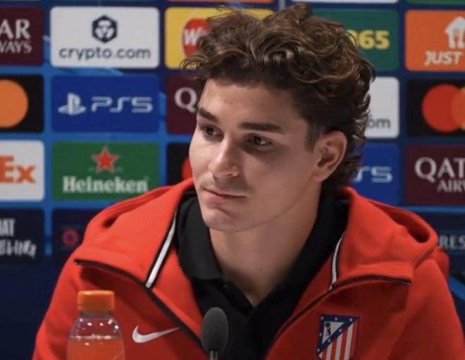 10月21日讯 欧冠联赛阶段第3轮,马竞将在客场对阵阿森纳。赛前,马竞前锋阿尔瓦雷斯出席了新闻发布会,并回答了记者的提问。