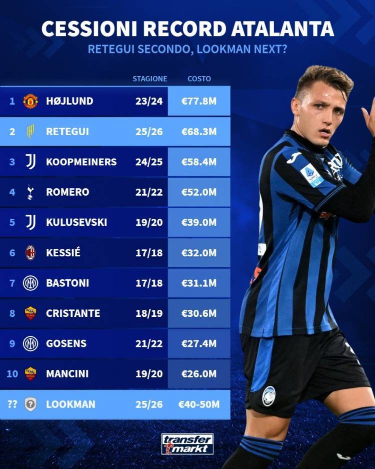 7月22日讯 德国转会市场统计了亚特兰大出售球员的转会费,并列出榜单,霍伊伦居首,雷特吉、库普梅纳斯前三,而卢克曼可能在今夏离队上榜,转会费4000万到5000万欧元。