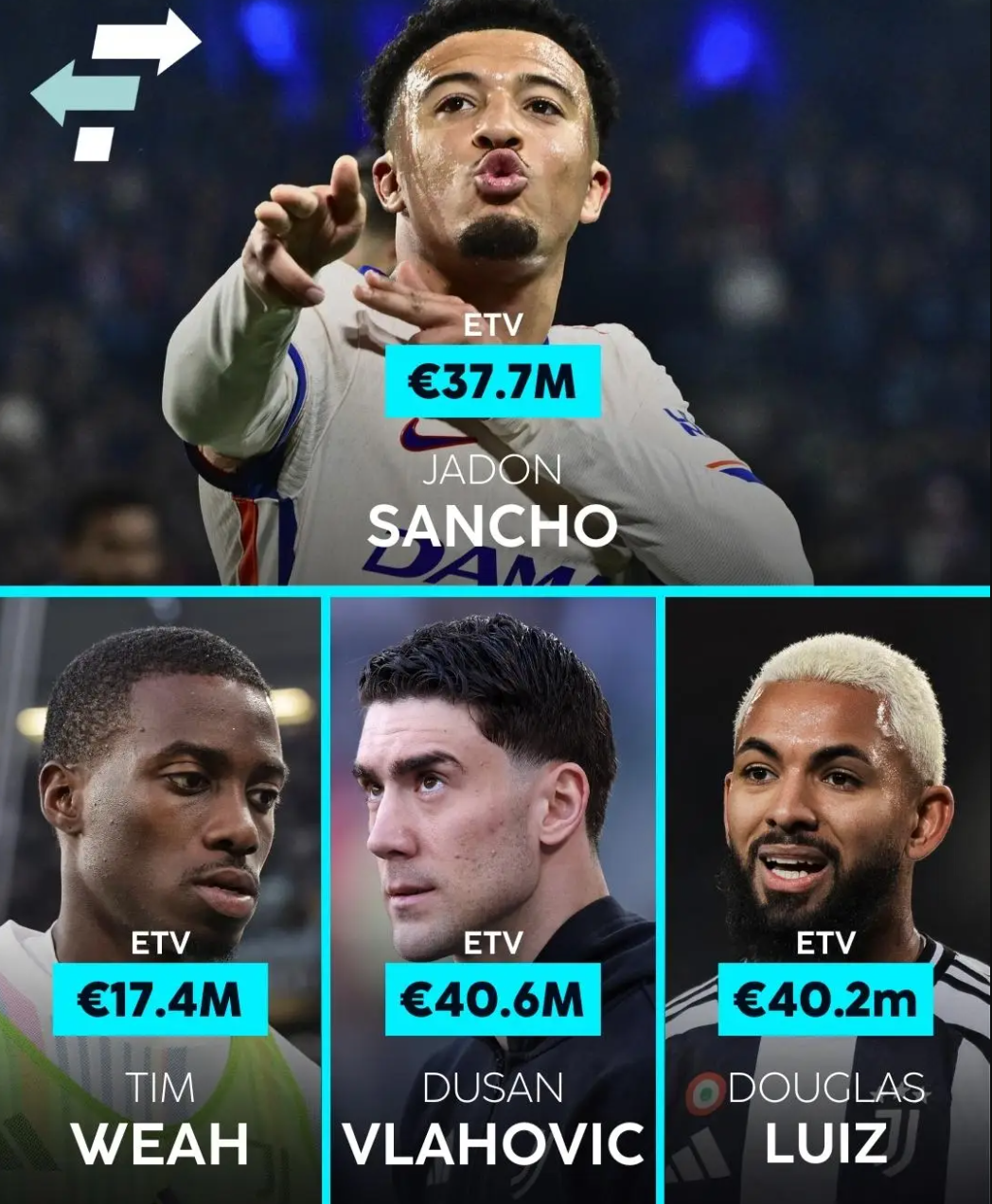 桑乔约2000万英镑的转会费基本确定,霍伊伦德方面曼联标价约4000万欧元的,虽低于引进价但也算合理的。打包成本对尤文约6000万欧元,这不是小数目,需要高层支持。但出售弗拉霍维奇的收入以及可能出售道格拉斯-路易斯等球员,应能提供资本。