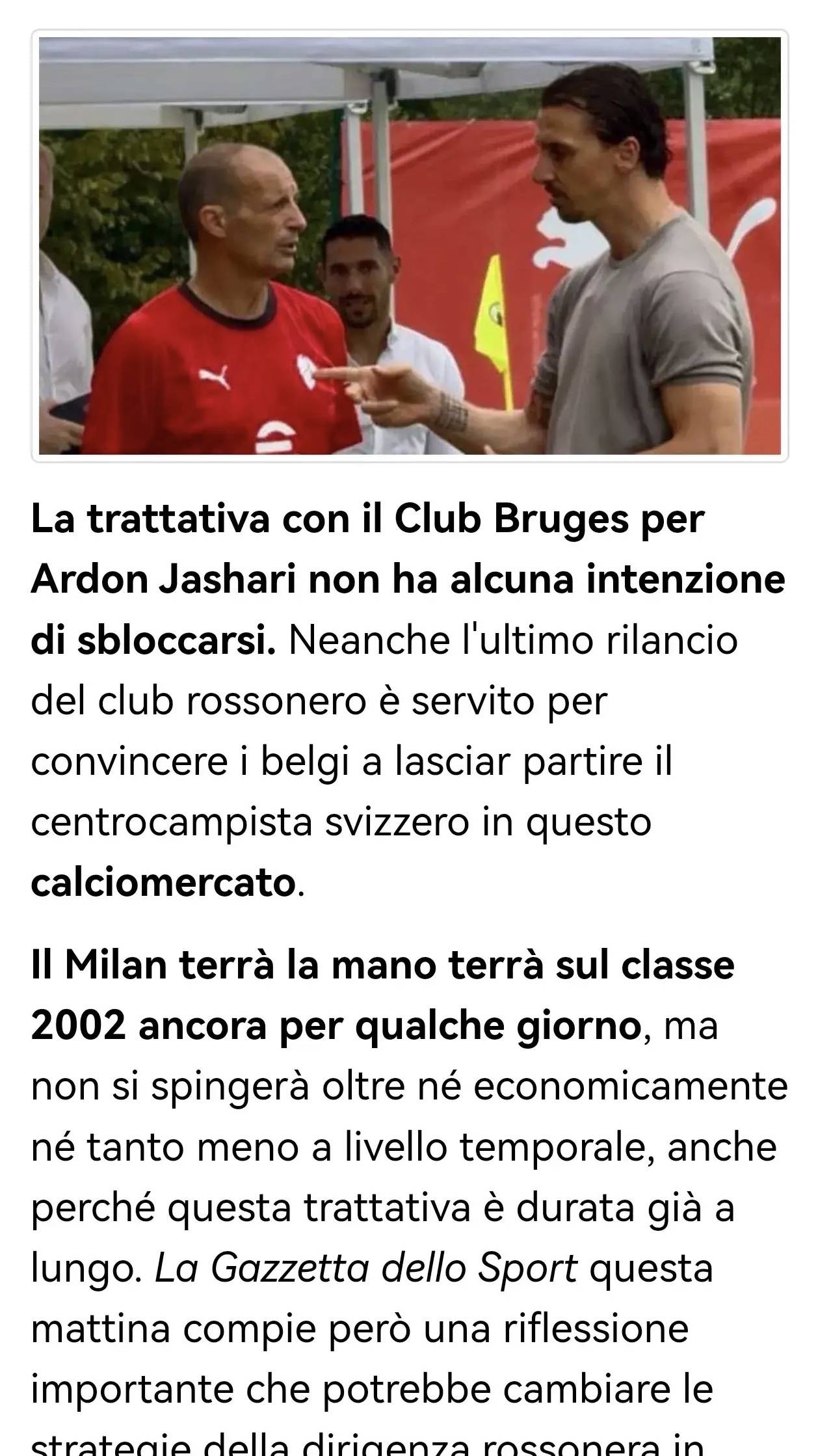 - 米兰为贾沙里提供最终报价 3500万欧固定+200万浮动 (2025/07/29 11:18)