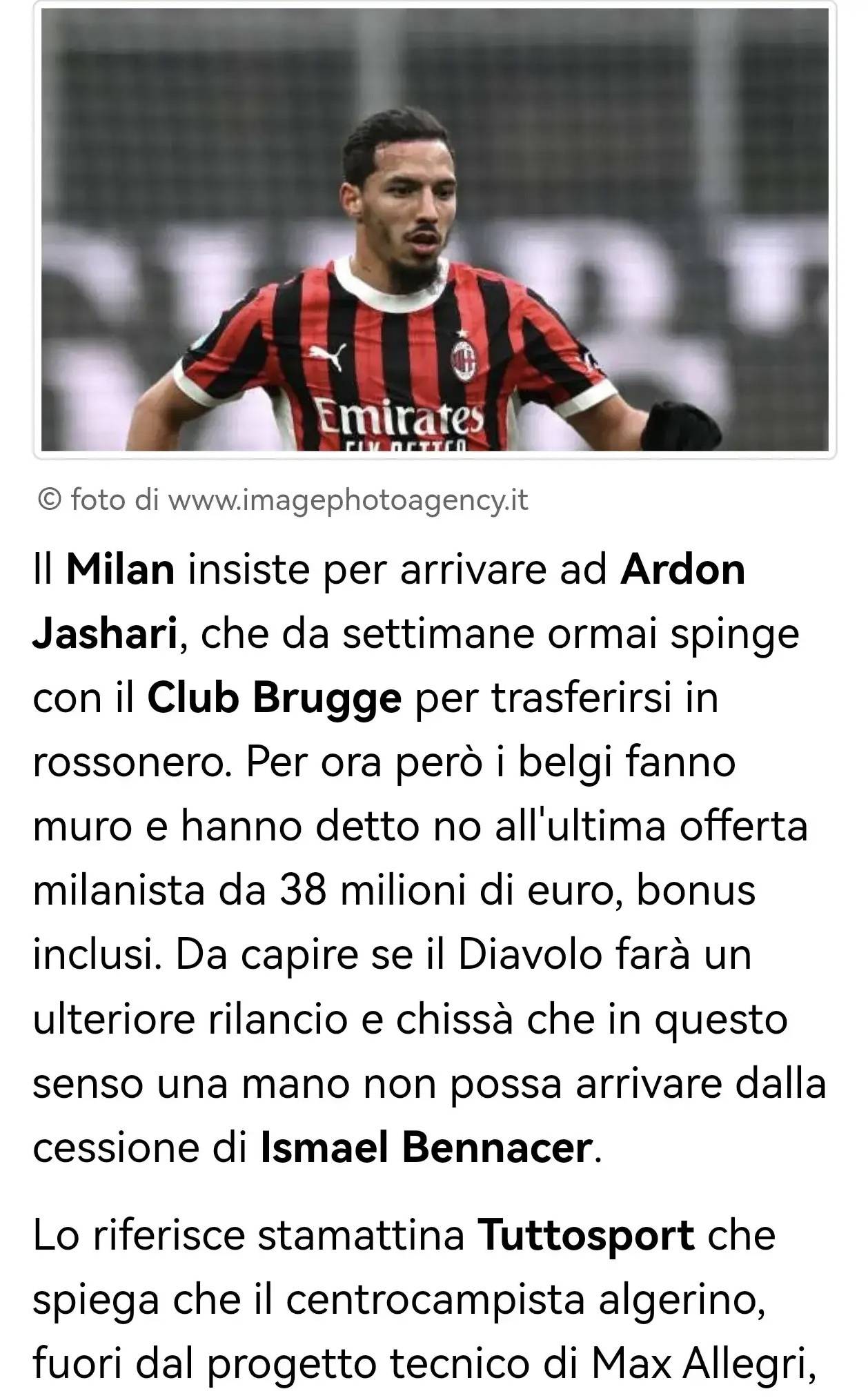 - 米兰为贾沙里提供最终报价 3500万欧固定+200万浮动 (2025/07/29 11:18)