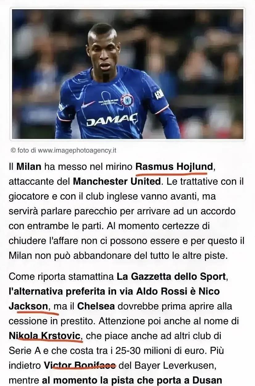 - 意媒:米兰目标霍伊伦德的备胎首选是切尔西的杰克逊 (2025/08/15 10:15)