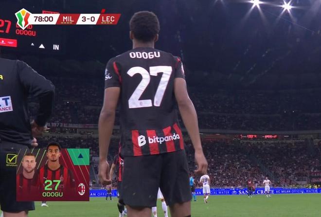 意大利杯第二轮主场迎战莱切的比赛中,米兰后卫奥多古在第79分钟替补出场。