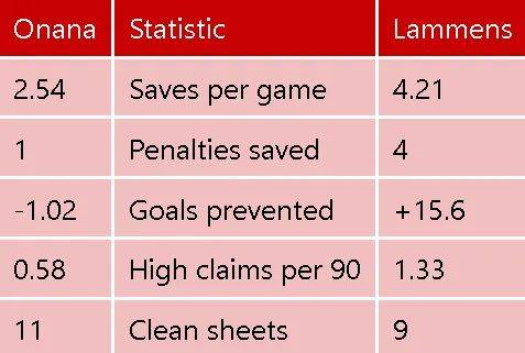 拉门斯在扑救率、高出击率等数据的排名也非常高,并且是欧洲扑救点球最好的球员,这些方面都比安德烈·奥纳纳要好得多。扑救点球专家,这不禁让人想起曼联的另一位传闻引进门将大马丁。