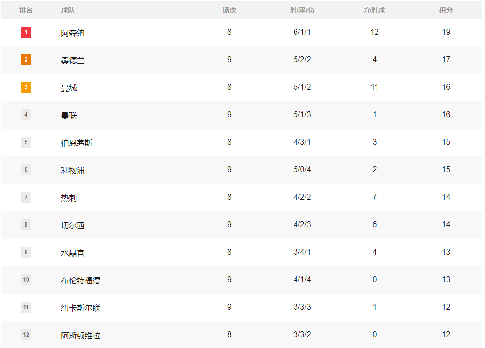 曼联算上本场已经是英超三连胜,他们也凭借5胜1平3负积16分的战绩,暂时升至了积分榜的第四位。