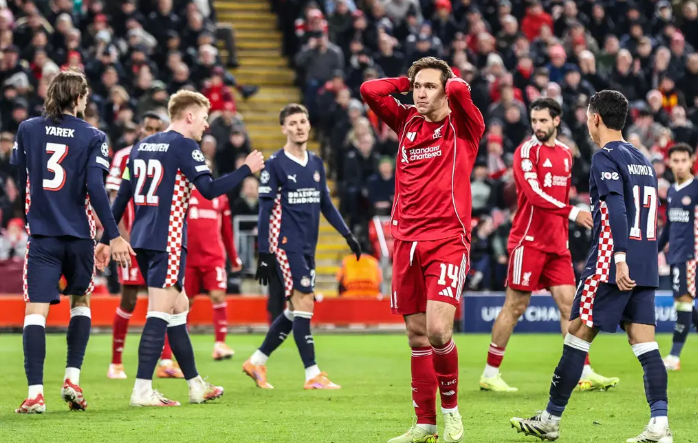欧冠-范迪克送点索博破门 利物浦1-4埃因霍温正赛3连败