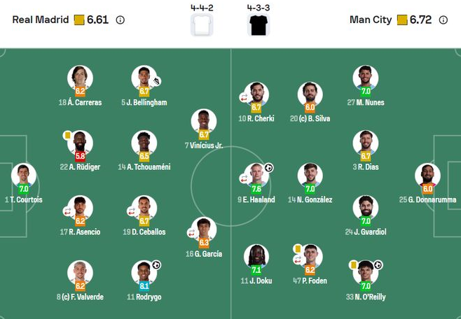 曼城2-1皇马,球员评分出炉:最差之人无争议