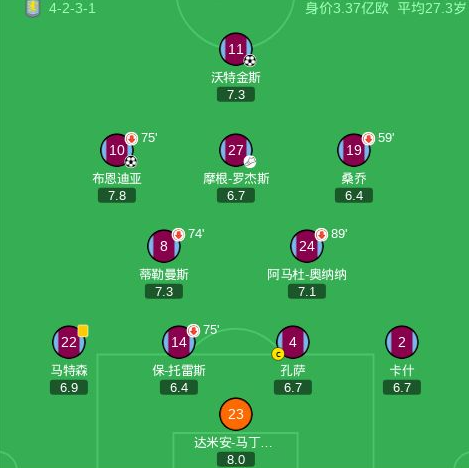 第88分钟,迪涅左路传中,沃特金斯头球破门,维拉2-0纽卡