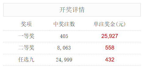 足彩25122期开奖结果:一等奖405注 单注奖金2.5万元