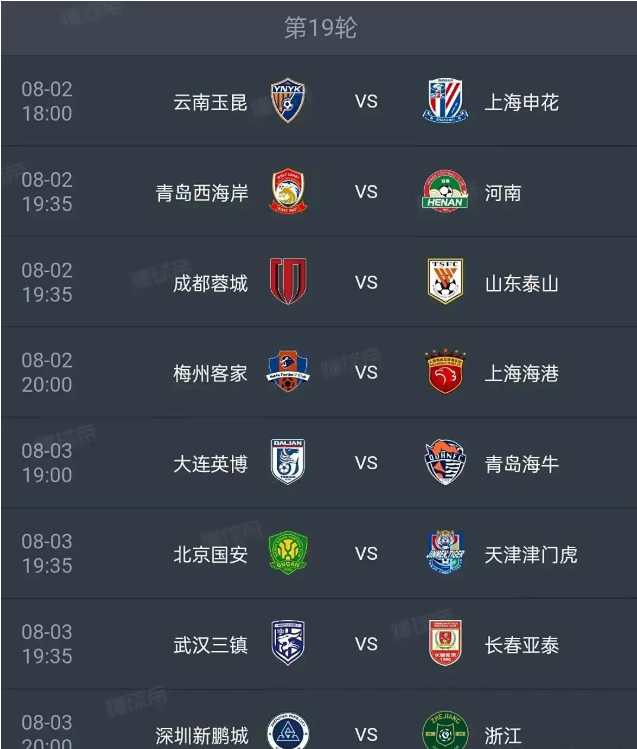 8月2日18点开始,这是本轮最早开始的一场比赛。