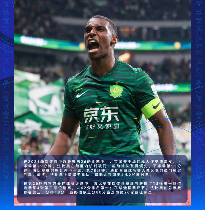 帽子戏法助国安止颓!官方:法比奥当选第26轮最佳球员
