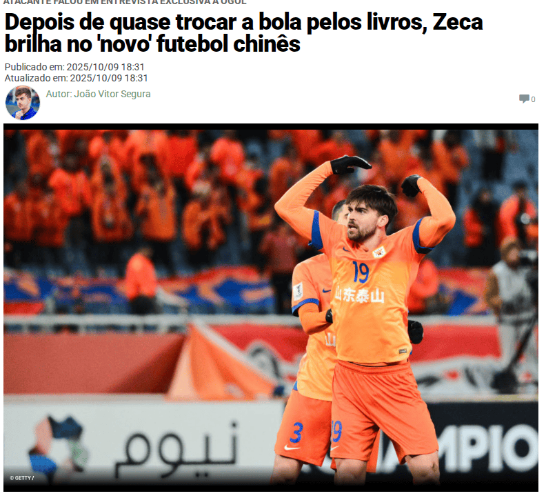 泽卡于2024年签约泰山队,在中国的第一年就遭遇了伤病,但到了2025年,他的表现达到了预期:出场21次,进球10个,助攻7次。在两位巴西球员克雷桑和马德鲁加的支持下,泽卡依然充满动力,渴望创造历史。