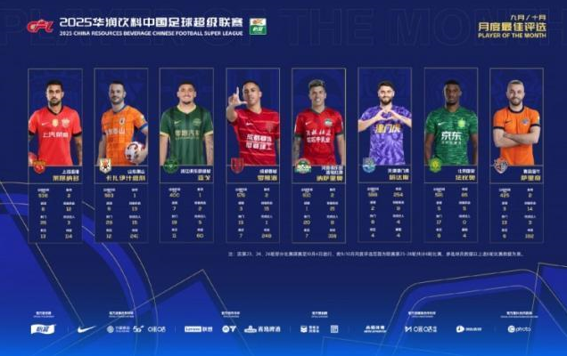 注:因第23、24、26轮部分比赛调赛至10月4日进行,故9/10月月度评选范围为联赛第23-28轮共计6轮比赛,参选球员数据以上述6轮比赛数据为准。