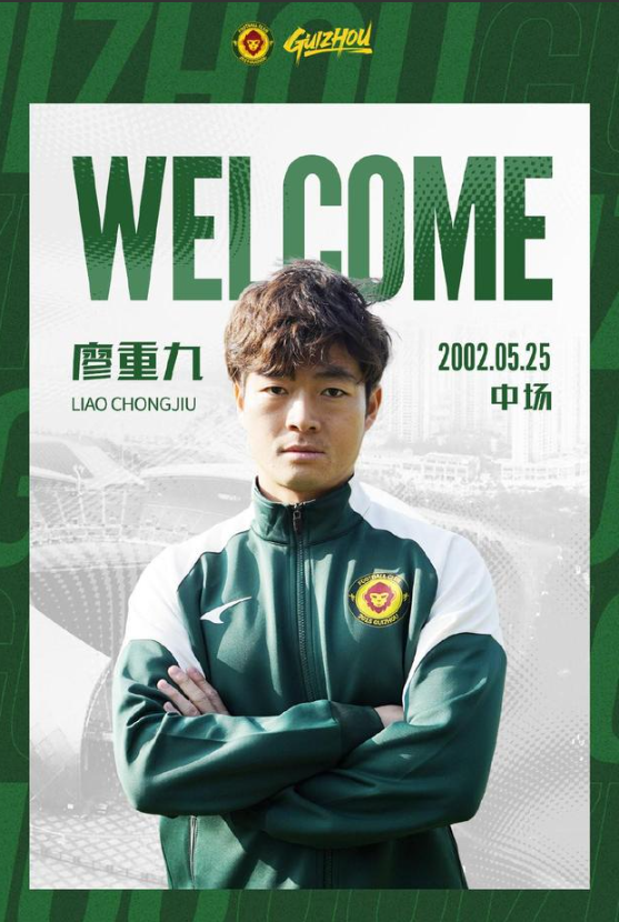 北京时间1月14日,贵州筑城竞技官方宣布,原上海海港B队球员廖重九加盟俱乐部。
