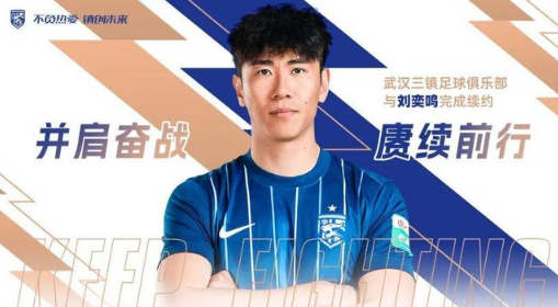 北京时间1月27日,武汉三镇俱乐部发布公告,宣布与球队后卫刘奕鸣完成续约。