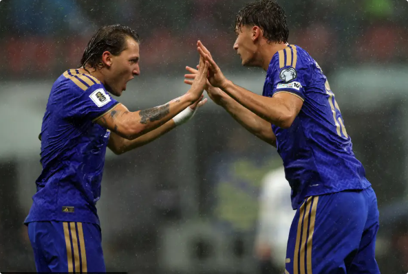 北京时间11月17日凌晨03:45,世预赛欧洲区小组赛I组迎来最后一轮生死大战,意大利坐镇主场梅阿查球场迎战小组“领头羊”挪威。上半场,埃斯波西托转身射门先拔头筹。下半场,努萨爆射扳平比分,哈兰德两分钟内连入两球将比分反超,拉尔森补时阶段进球锁定胜局。最终,意大利主场1-4不敌挪威,遭遇对手的双杀,位列小组第二无缘直通世界杯正赛,只能通过世预欧附加赛争夺最后出线资格。而挪威则凭借本场胜利锁定小组第一,时隔28年再次晋级世界杯。