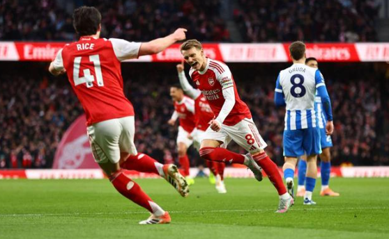 北京时间12月27日23:00,英超联赛第18轮,阿森纳在主场对阵布莱顿。上半场比赛,萨卡助攻厄德高首开纪录,半场阿森纳1-0领先;下半场,赖斯造鲁特尔乌龙扩大领先优势,布莱顿由迭戈-戈麦斯扳回一球,最终阿森纳2-1战胜布莱顿,仍以2分优势领跑英超积分榜。