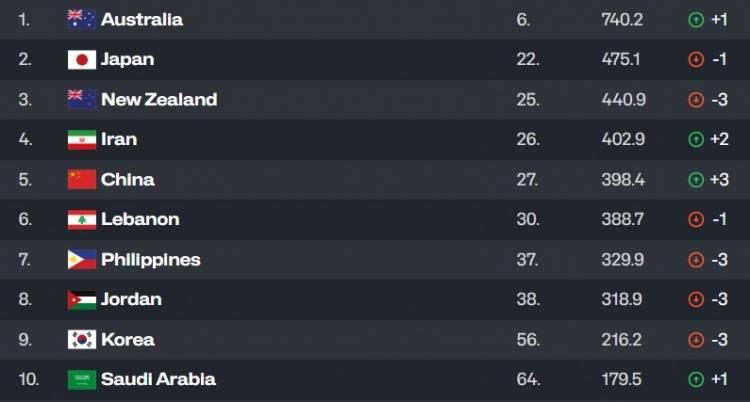 对于澳大利亚,赢了亚洲杯,积分也只是从733到740,可见亚洲杯的系数有多低。