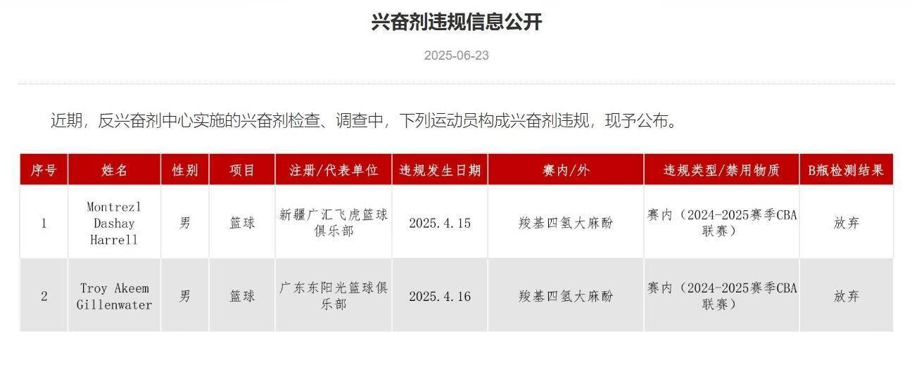 上个赛季,中国篮协曾经通报了新疆外援哈雷尔和广东外援吉伦沃特构成兴奋剂违规的情况。在哈雷尔合约被终止的同时,吉伦沃特却官宣加盟了中国台湾P+联赛的富邦勇士队。