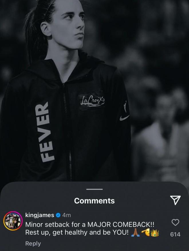 湖人球星詹姆斯评论道:“小小的挫折成就大大的回归!好好休养,恢复健康,做你自己!”
