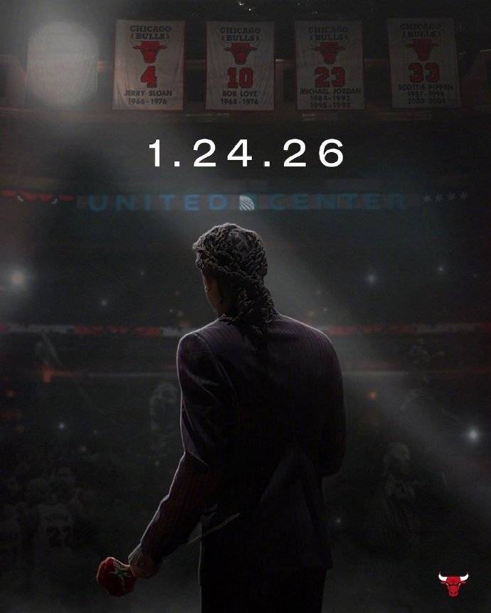 公牛官方声明:欢迎加入我们,共同见证德里克-罗斯球衣退役之夜。1号球衣将正式悬挂在联合中心的球馆上空。