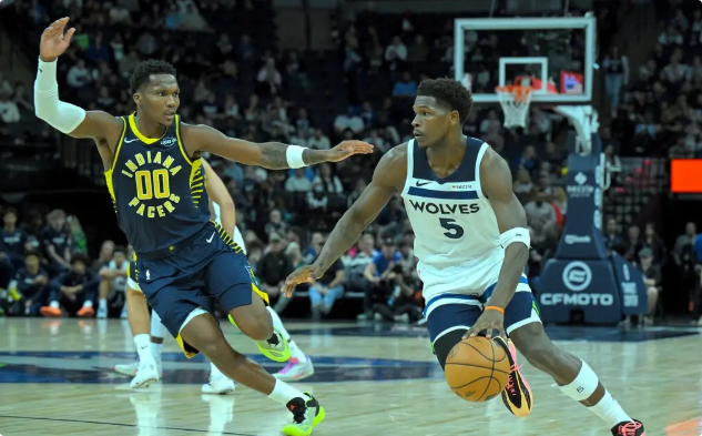第一节,比赛一开始,森林狼凭借强劲的进攻以5-2取得领先。随着比赛的进行,步行者迅速调整状态,展现出强大的进攻火力,不仅抹平了比分,还一度领先森林狼11分。虽然小节后段森林狼有所反扑,但步行者依旧掌握主动权。本节比赛,森林狼的爱德华兹表现出色,得到11分,其中包括一记三分。第一节结束,步行者以37-29领先。