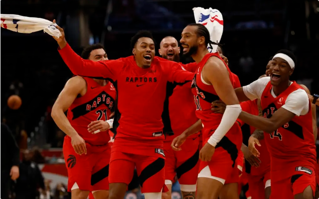 猛龙队首发:伊曼纽尔-奎克利、RJ-巴雷特、斯科蒂-巴恩斯、贾科比-沃尔特、桑德罗-马穆凯拉什维利