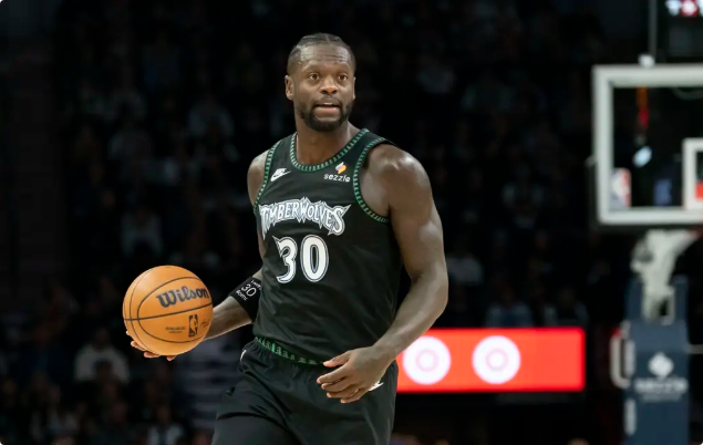 森林狼队首发:朱利叶斯-兰德尔、丹特-迪文琴佐、鲁迪-戈贝尔、贾登-麦克丹尼尔斯、安东尼-爱德华兹