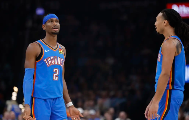 雷霆队首发:谢伊-吉尔杰斯-亚历山大、以赛亚-哈尔滕施泰因、卡森-华莱士、阿龙-威金斯、吕冈茨-多尔特