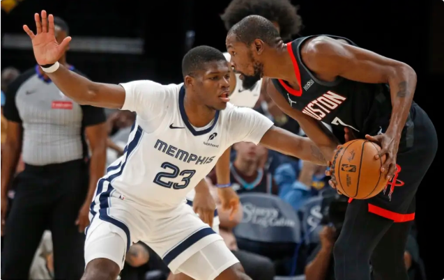 火箭队首发:阿门-汤普森、阿尔佩伦-申京、小贾巴里-史密斯、约什-奥科吉、凯文-杜兰特