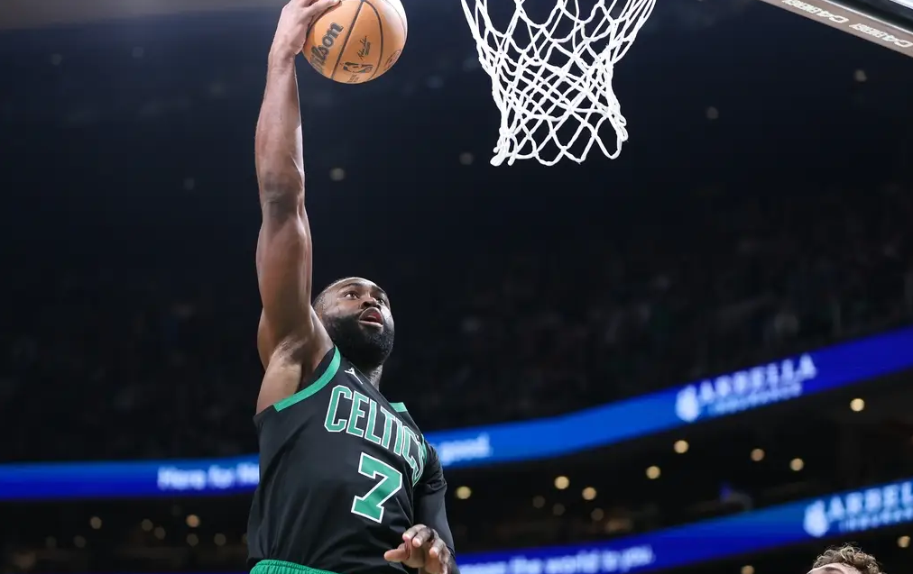 凯尔特人队首发:杰伦-布朗、佩顿-普理查德、德里克-怀特、内米亚斯-克塔、乔丹-沃尔什