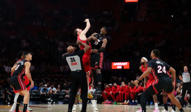 比赛刚开始,热火迅速展开进攻,打出一波10-2的高潮,展现出良好的进攻状态。然而,猛龙并未气馁,逐渐找回节奏,不仅成功追平比分,还在本节中段反超了热火,领先1分。随着时间的推移,热火在小节后段逐渐缩小分差。此节比赛中,猛龙的英格拉姆表现出色,单节独得12分,助力球队以23-22的微弱优势结束第一节。