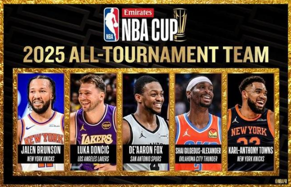 在最佳阵容中,杯赛MVP布伦森领衔,队友唐斯也入选。东契奇作为唯一一个非四强球队入选了阵容。