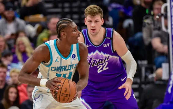 黄蜂队首发:布兰登-米勒、拉梅洛-鲍尔、迈尔斯-布里奇斯、康-克尼普尔、穆萨-迪亚巴特